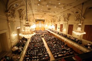 Was wäre das Grazer Musikleben ohne den Stefaniensaal – und was wäre der Musikverein Graz ohne den Stefaniensaal! Der größte historische Konzertsaal der Stadt zählt mit seinem festlichen Ambiente und seiner hervorragenden Klangqualität zu den akustisch besten Konzertsälen der Welt. Der Saal in seiner heutigen Ausführung, das prunkvolle Foyer mit seiner Feststiege sowie der Kammermusiksaal wurden 1908 vollendet, und bereits damals hatte Josef Ritter von Franck, Präsident der Steiermärkischen Sparkasse, erkannt: „Abgesehen von der veredelnden Wirkung, welche die Pflege der Musik auf das menschliche Gemüt äußert, kann Graz im Besitze dieser Säle eine Musikstadt ersten Ranges werden […].“