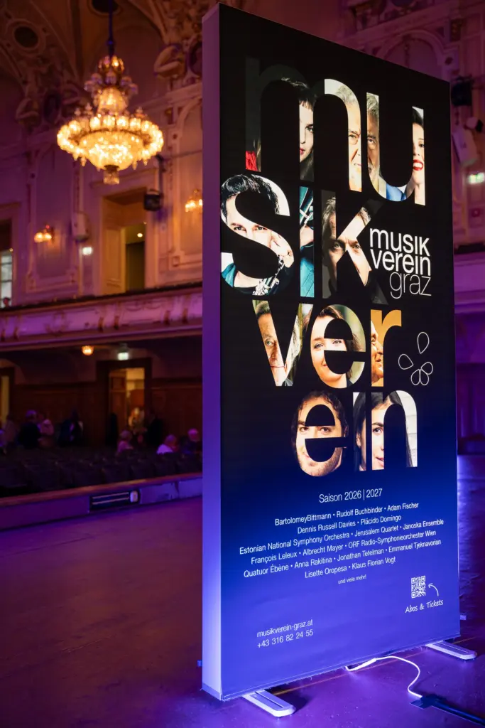Die neue Saison 2026/27 des Musikvereins Graz ist da und sie hat einiges zu bieten! Von großer Symphonie und international renommierten Solistinnen und Solisten über abwechslungsreiche Kammermusik bis hin zu Konzerten für die ganze Familie und leidenschaftlichen Liederabenden.